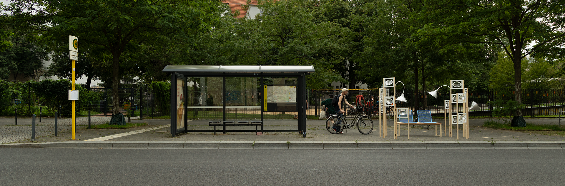 Die Haltestille ist der Prototyp einer Installation für den öffentlichen Raum. Sie inszeniert einen alltäglichen Wartemoment – das Warten auf den Bus oder die Straßenbahn an einer Haltestelle – auf audio-visuelle Weise.